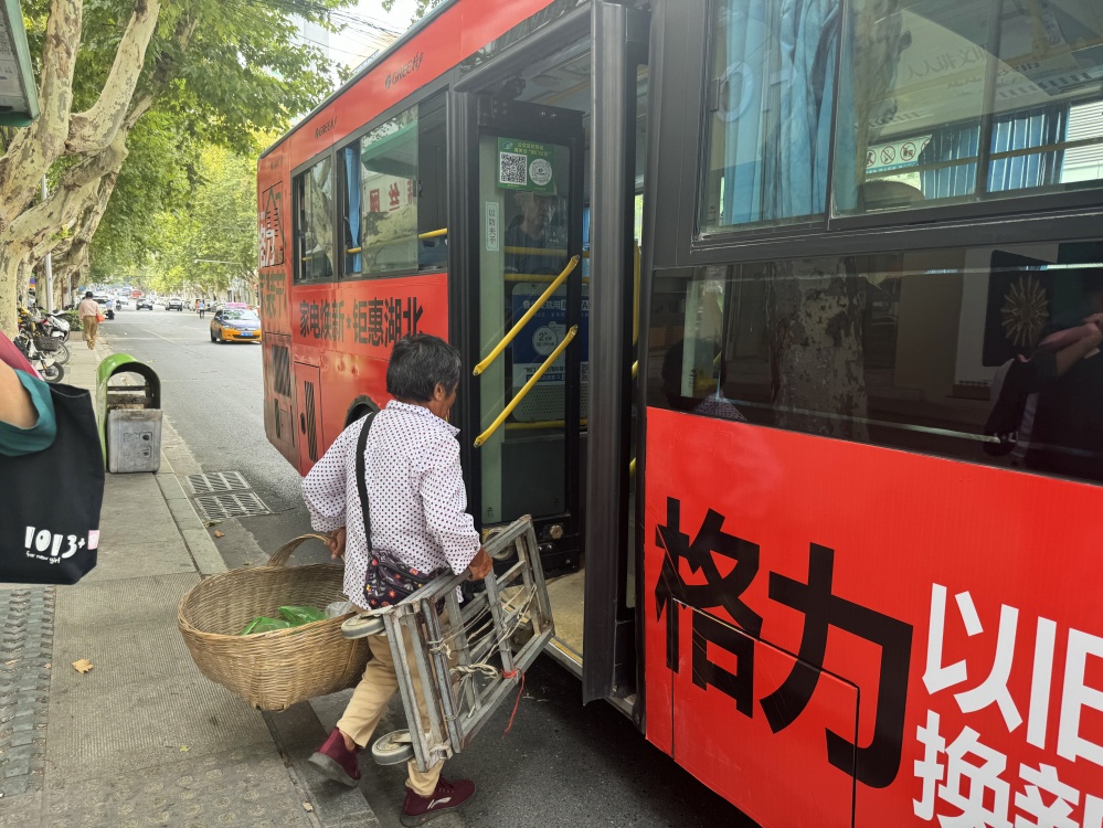 6時50分,公交車準(zhǔn)時到達(dá),駕駛員余平熱情幫助村民乘車。