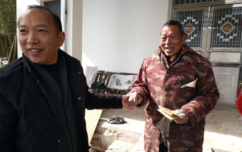 走訪中,扶貧負(fù)責(zé)人與李召林、李華山、周啟明等村民親切交談,對(duì)他們2017年脫貧情況進(jìn)行了了解,并送上新年慰問(wèn)金。村民拉著扶貧負(fù)責(zé)人的手表示了對(duì)扶貧組到來(lái)的萬(wàn)分感謝以及黨和國(guó)家對(duì)他們的關(guān)懷之情。