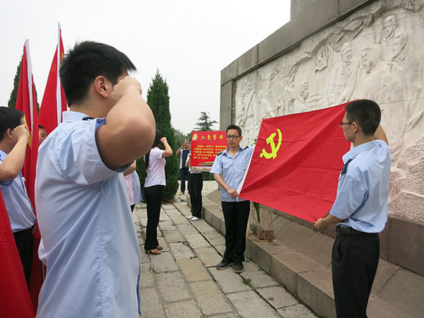 登山比賽結(jié)束,集團公司黨委組織全體黨員在烈士陵園的革命烈士紀(jì)念碑下肅立,舉行莊重的入黨宣誓。在齊唱《中華人民共和國國歌》之后,今年剛轉(zhuǎn)正的黨員周小艷、孟津平、劉斌、何俊、董丁奧5名同志,以及王雄峰、江志剛、陳荊梅3名預(yù)備黨員,舉行了入黨宣誓。隨后新黨員代表王雄峰同志代表全體黨員發(fā)言。接著,公司黨委副書記、紀(jì)檢書記文勁同志代表黨委致辭。最后,公司黨委書記龐守江為本次慶七.一登山比賽獲得名次的同志頒發(fā)了獎品,并要求全體黨員要牢記入黨誓詞,踐行黨員義務(wù),以黨員的標(biāo)準(zhǔn)嚴格要求自己,充分發(fā)揮黨員的先鋒模范作用, 為實現(xiàn)荊門公交跨越發(fā)展和中華民族的偉大復(fù)興貢獻自己的力量,無愧于中國共產(chǎn)黨員的光榮稱號!