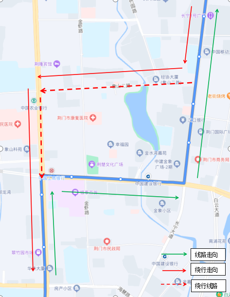調整后新增??空军c:瀏河橋(西側)、金寧小區(qū)(西側)、荊門電視臺(西側)、鳳臺社區(qū)(北側)、?;壑袑W(北側)。